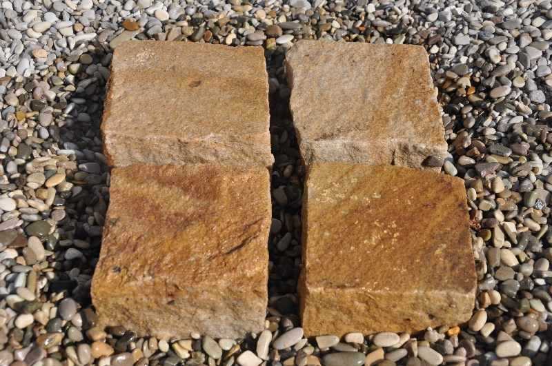 Колотая брусчатка из песчаника размером около 10х10х3-4 см./4-5 см. (Допуск ± 15 мм на сторону). Цвет бело-желтый, бежевый, присутствует природный рисунок. Практичный, недорогой и долговечный материал, отлично подходит для создания прямых и извилистых дорожек. Просим обратить Ваше внимание на то, что по фотографии не всегда возможно получить полное представление о размере, форме, фактуре и расцветке камня. С интересующей позицией Вы всегда можете ознакомиться на нашем складе. Мы с удовольствием поможем Вам определиться с выбором камня для Ваших нужд, а также проконсультируем о его свойствах и сферах применения.