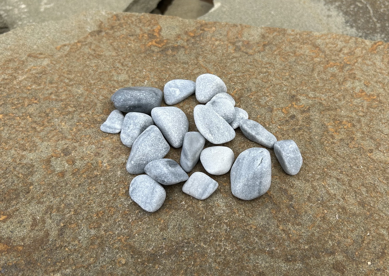 Серо-голубой окатанный мрамор. Используется для декоративных отсыпок, устройства рокариев и альпинариев.