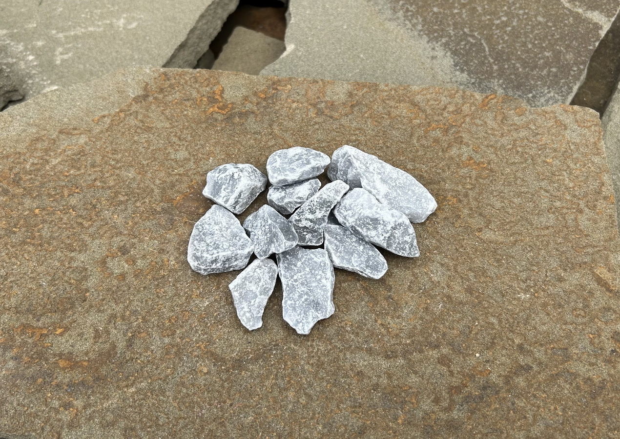 Крошка из серо-голубого окатанного мрамора. Используется для декоративных отсыпок, устройства рокариев и альпинариев.
